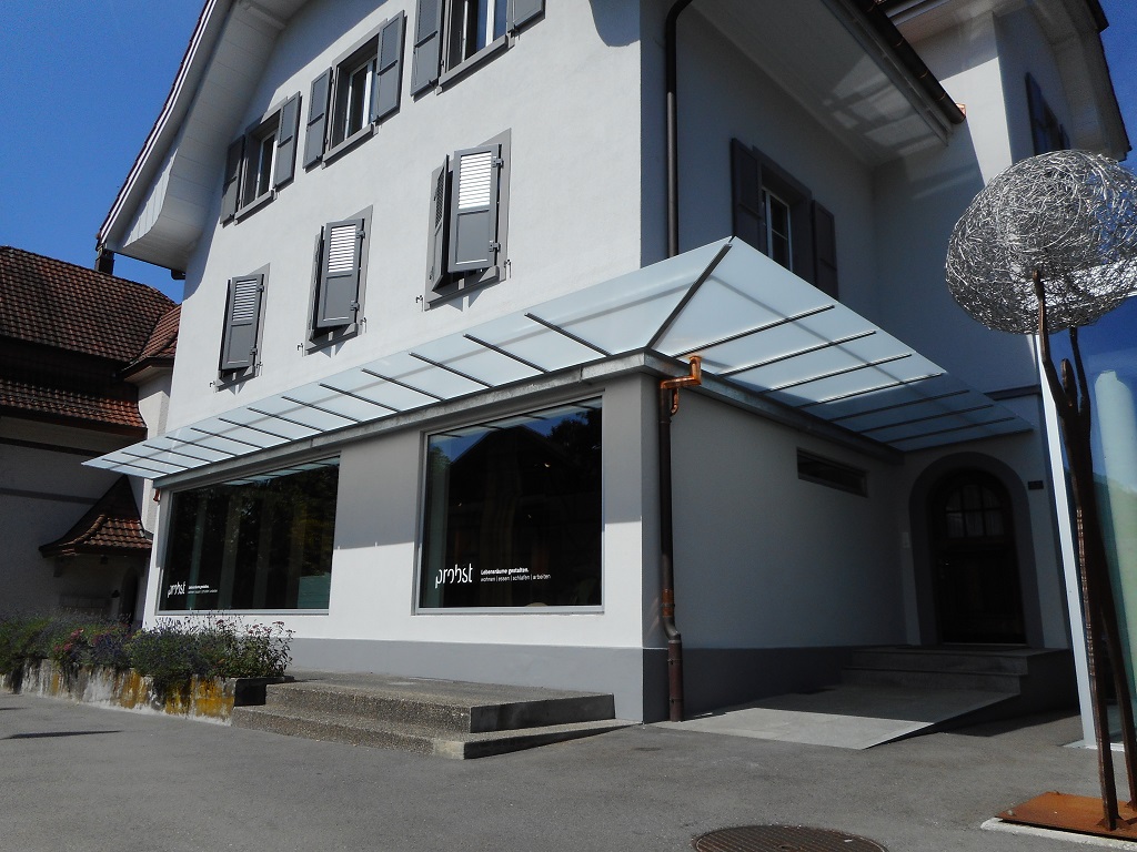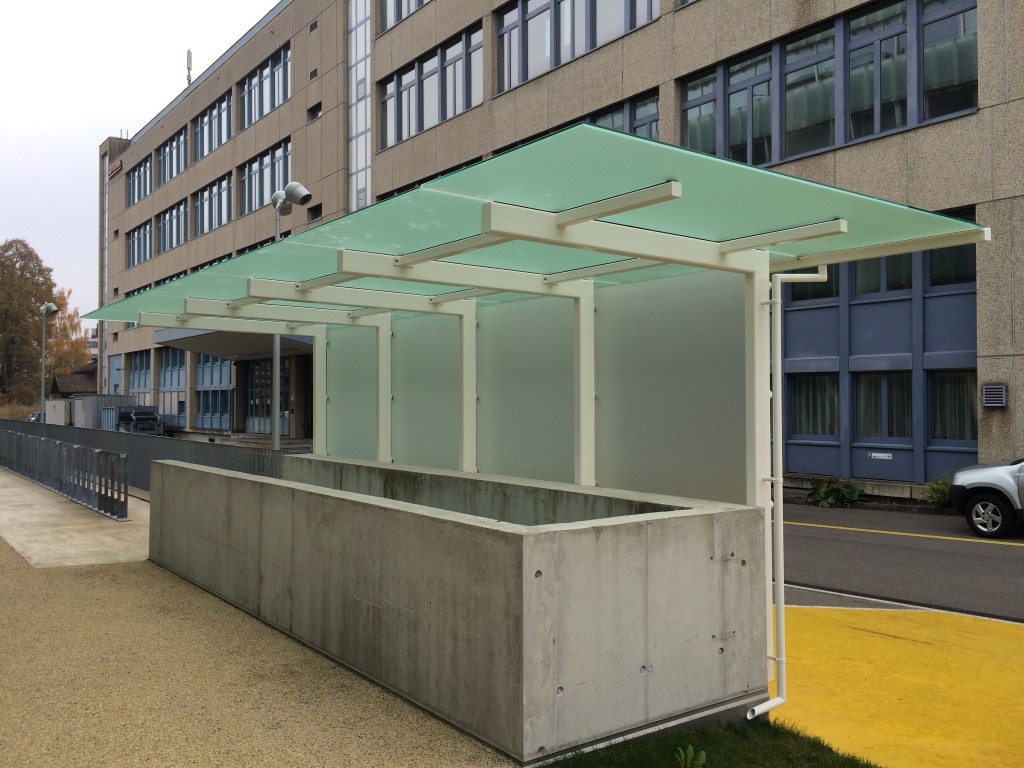 Mit Vordachkonstruktionen nach Maß von Metallbau Stoller Belp AG